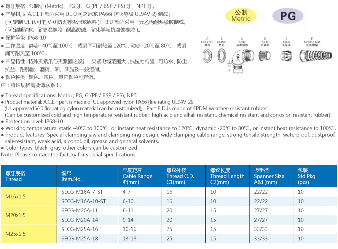 多孔&扁孔尼龙电缆接头
