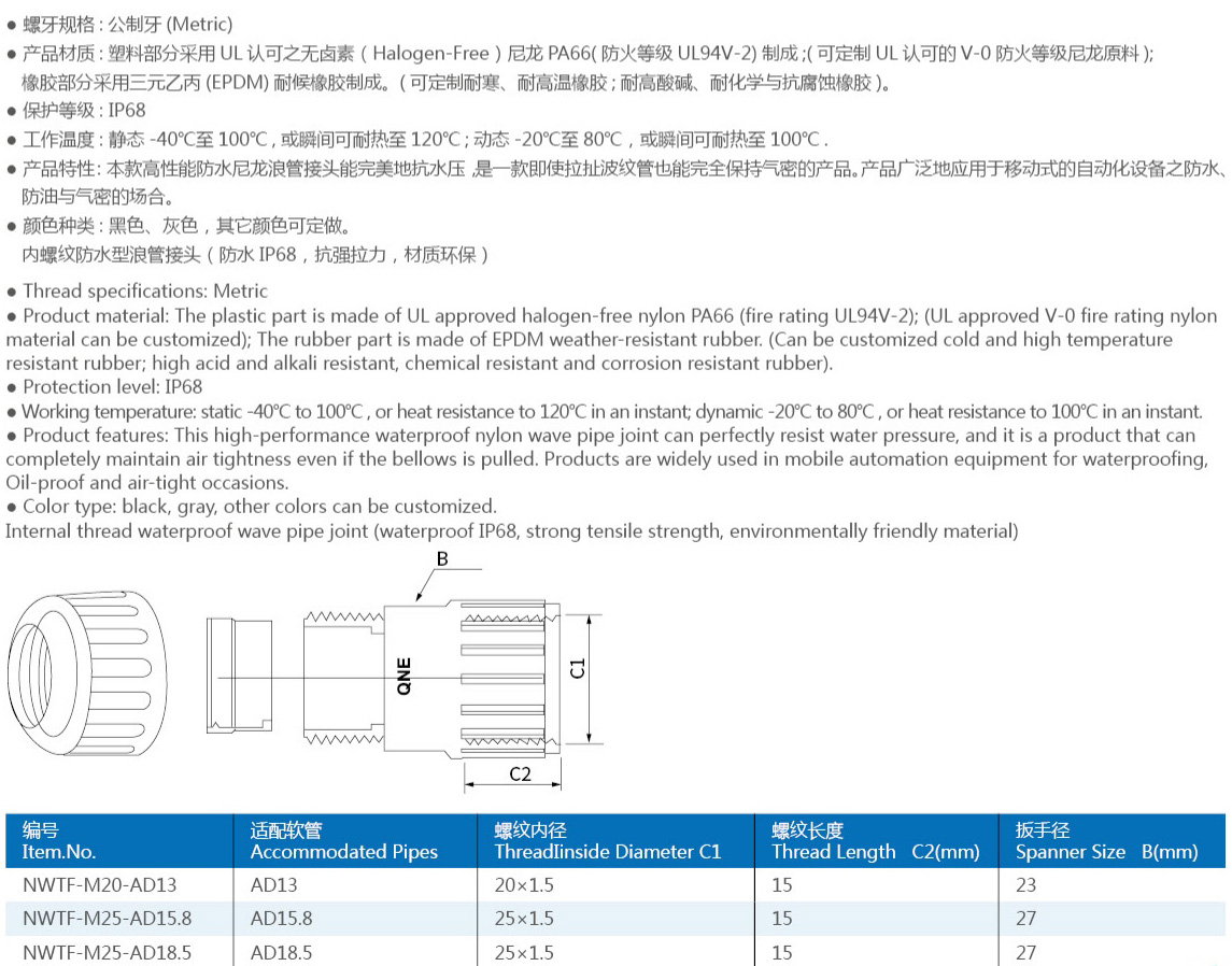 内螺纹防水浪管接头