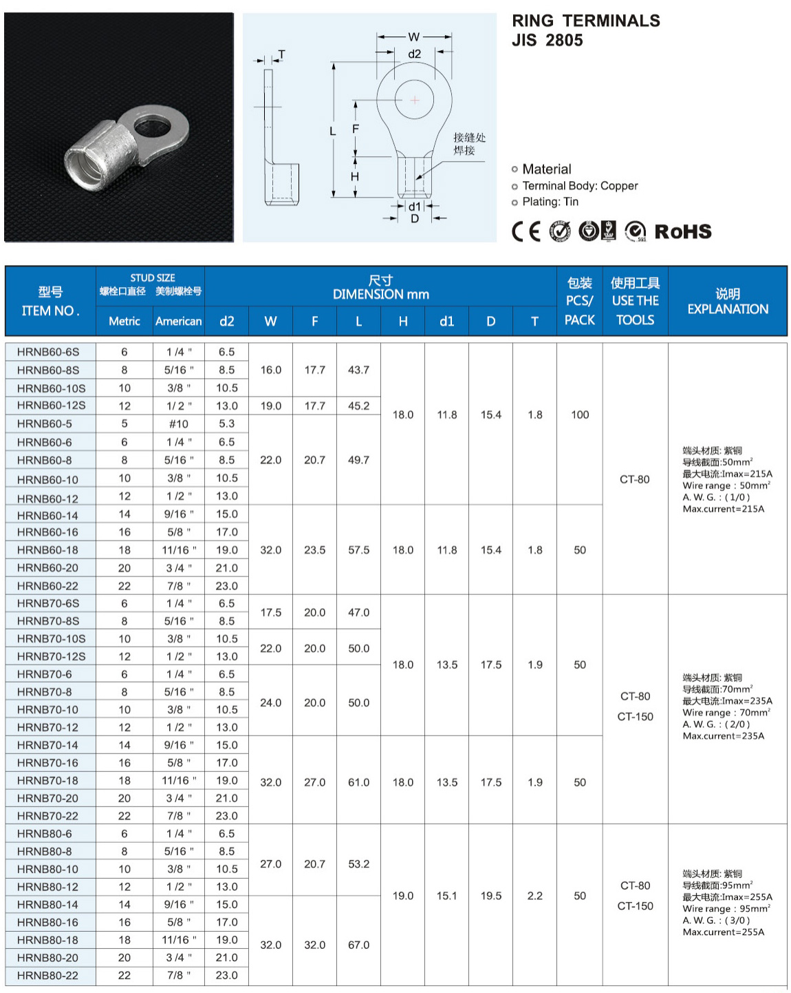 圆形裸端头(TO型)