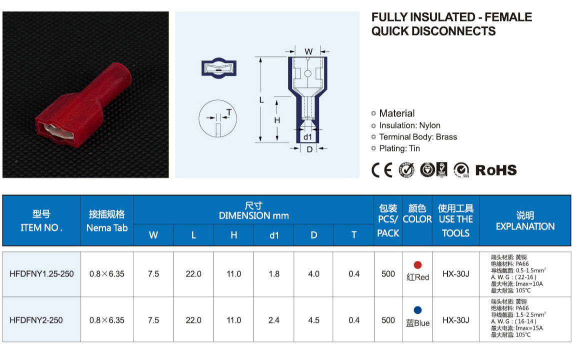 • 双压接式尼龙预绝缘端头