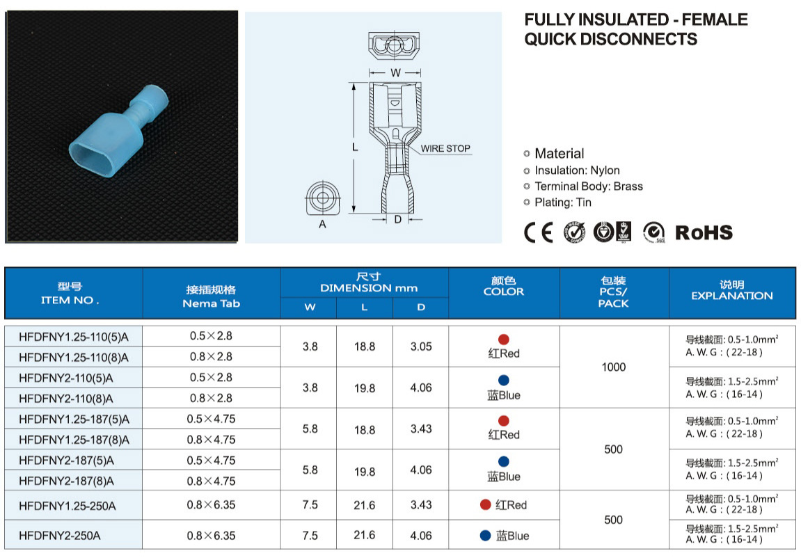 双压接式公母全/预绝缘接头