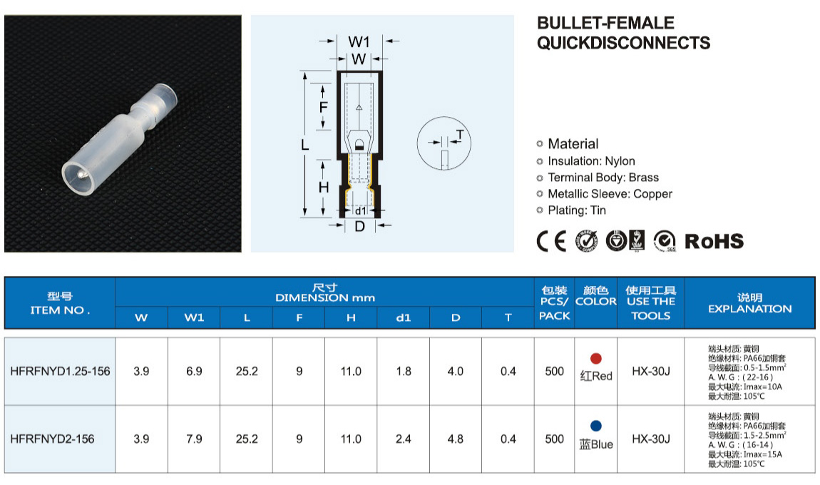 • 双压接式尼龙预绝缘端头