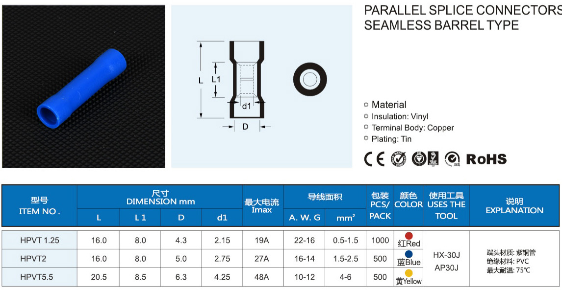 双压接式公母全/预绝缘接头