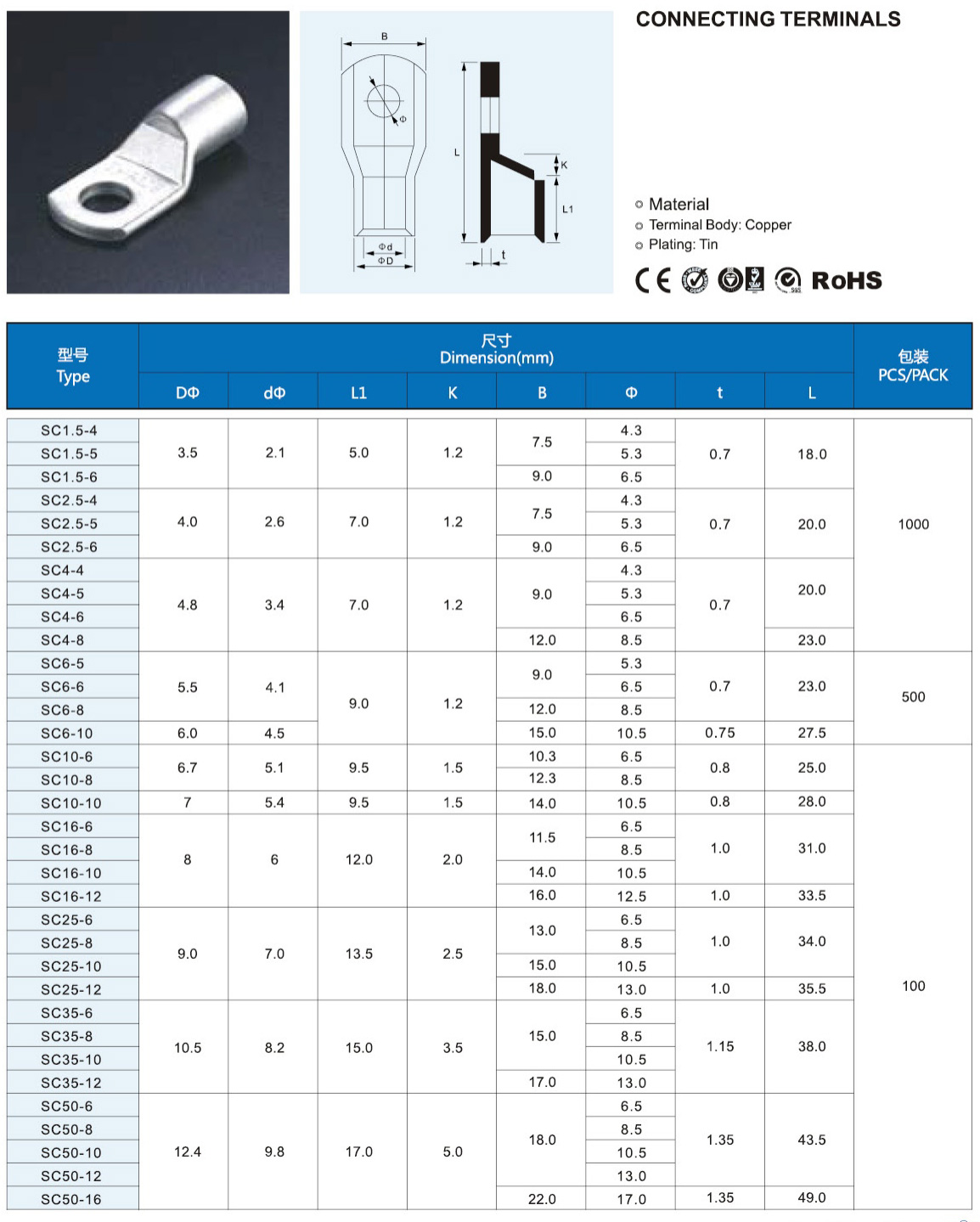 SC(DTGA)窥口系列铜接线端子
