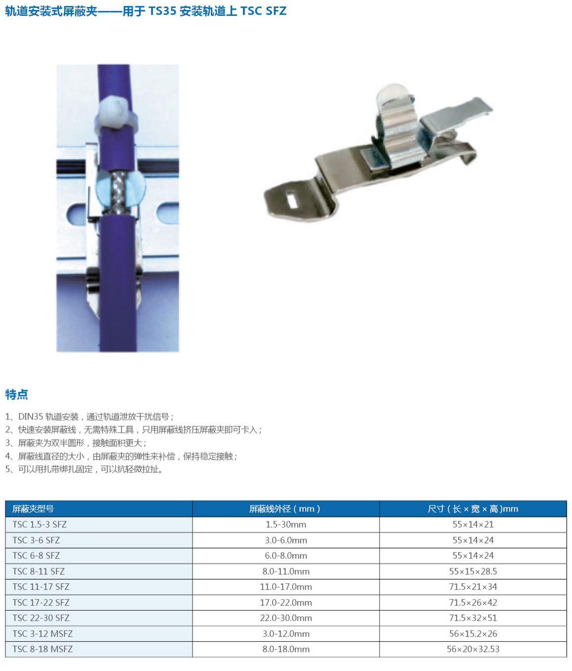 • TSC大范围屏蔽夹