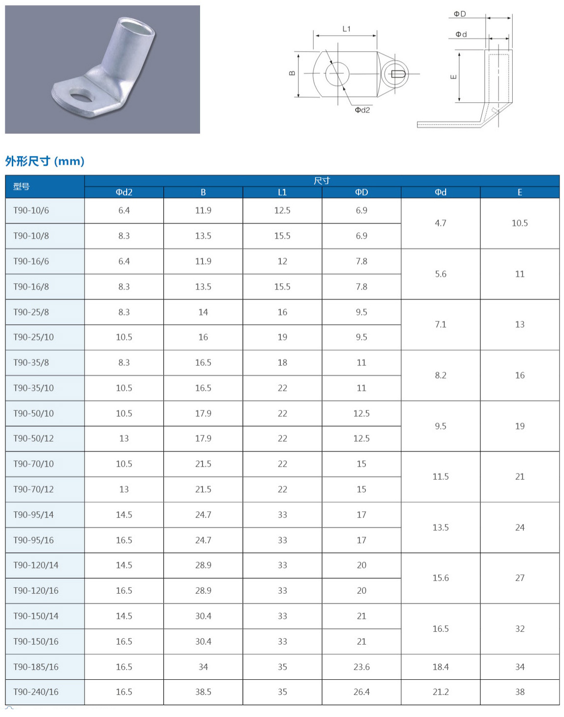 T2紫铜管 T90°铜管端子